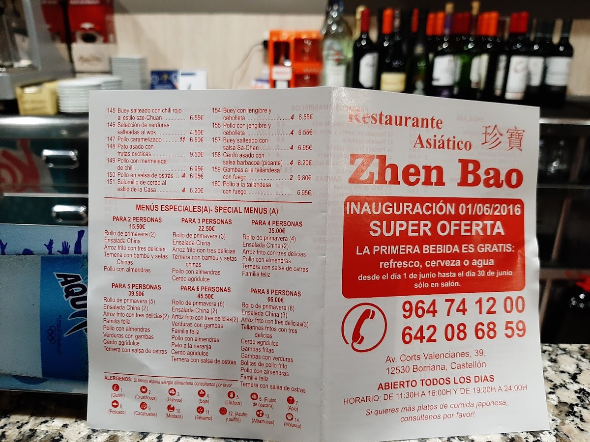 The menu at Restaurante Asiatico Zhen Bao offers a variety of traditional Chinese dishes designed for lunch and dinner service. It includes a selection of appetizers, main courses, and desserts that reflect classic flavors of Chinese and broader Asian cuisine.